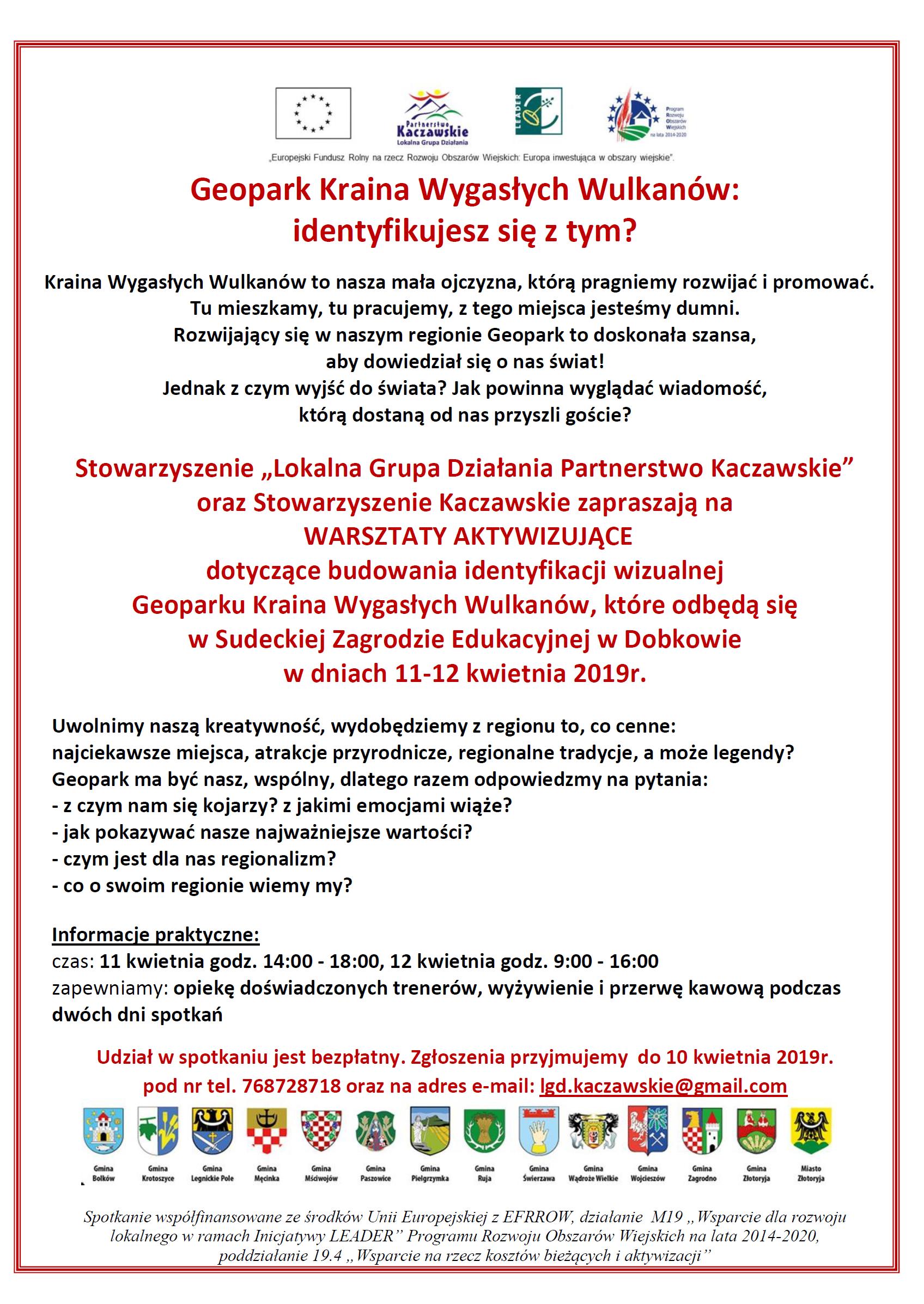 WARSZTATY AKTYWIZUJĄCE dotyczące budowania identyfikacji wizualnej Geoparku Kraina Wygasłych Wulkanów, które odbędą się w Sudeckiej Zagrodzie Edukacyjnej w Dobkowie w dniach 11-12 kwietnia 2019r.